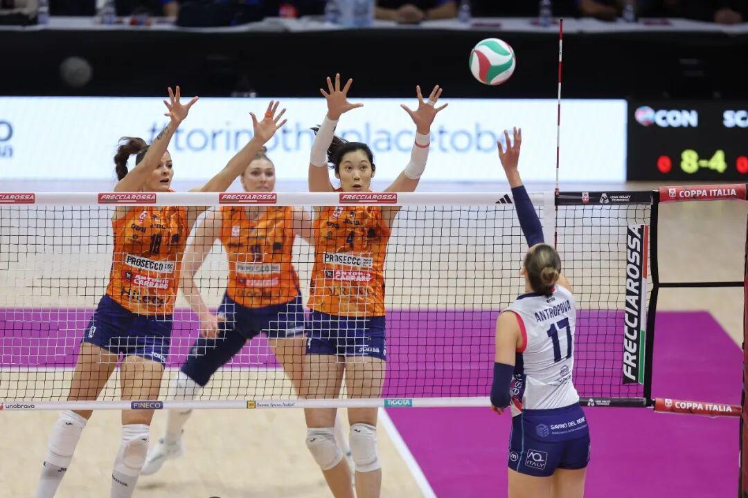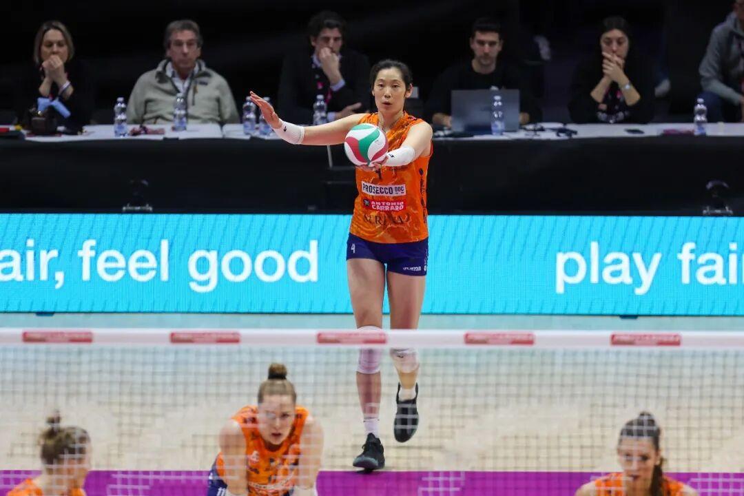 作为科内利亚诺的重要攻击手,朱婷在决赛中展现了世界级主攻的全面能力,她全场贡献13分,其中扣球29次命中12次,并有1次拦网得分。